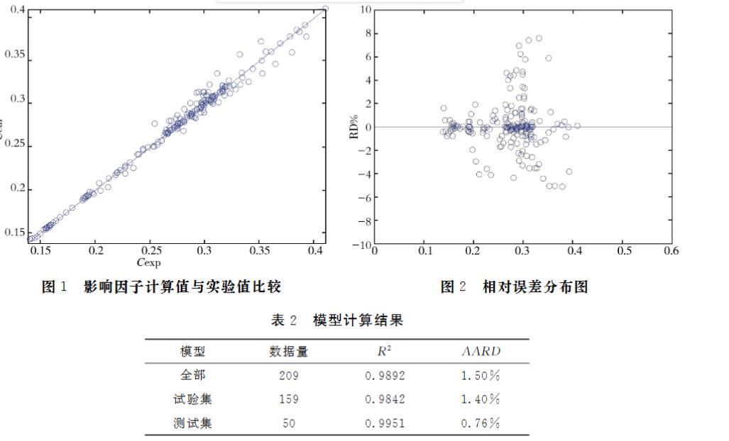 表1 影響因子關(guān)聯(lián)式回歸得到的參數(shù)值