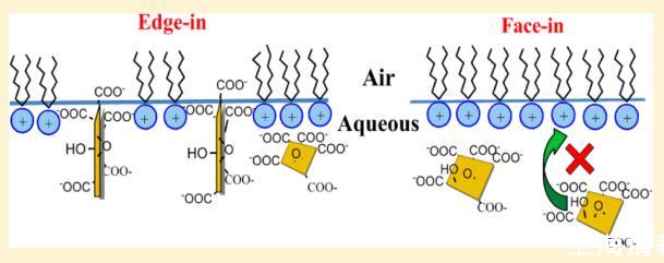 氧化石墨烯 (GO) 已證明 在生物醫(yī)學領(lǐng)域的各種有前途的應(yīng)用。 但 關(guān)于 GO 如何與細胞膜相互作用的信息或 模型系統(tǒng)仍然極其有限。 也是未知數(shù) GO 在與脂質(zhì)相互作用時會自我定向。 在這項研究中, Langmuir 單層技術(shù)應(yīng)用于空氣- 研究水/水界面的性質(zhì)和方向 GO 和脂質(zhì)模型之間的相互作用。 五脂 (DODAB、DSEPC、DSPC、DSPA 和 SA)具有相同的 18-碳烷基鏈但不同的電荷頭基被有意選擇以使可能的相互作用合理化。 實驗結(jié)果表明,這種相互作用是由極性頭部基團和 GO 之間的靜電相互作用控制的。 GO 可以摻入帶正電荷的脂質(zhì) DODAB 和 DSEPC 的單層,但不能摻入中性或負電荷的脂質(zhì) 帶電脂質(zhì)(DSPC、DSPA 和 SA)。 當 GO 被注入到帶正電荷的單層下面的亞相中時 脂質(zhì) DODAB 和 DSEPC,觀察到不同的表面壓力行為。 “edge-in”而不是“edge-in”的方向模型 提出了“face-in”來解釋GO對DODAB單層的吸附。