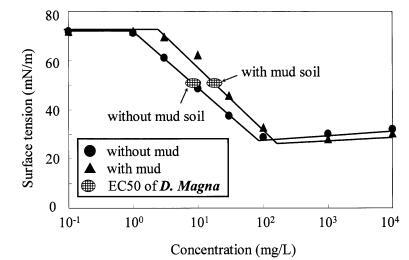 圖13泥質土壤存在對大型水蚤AS表面張力曲線和有毒表面張力值的影響。