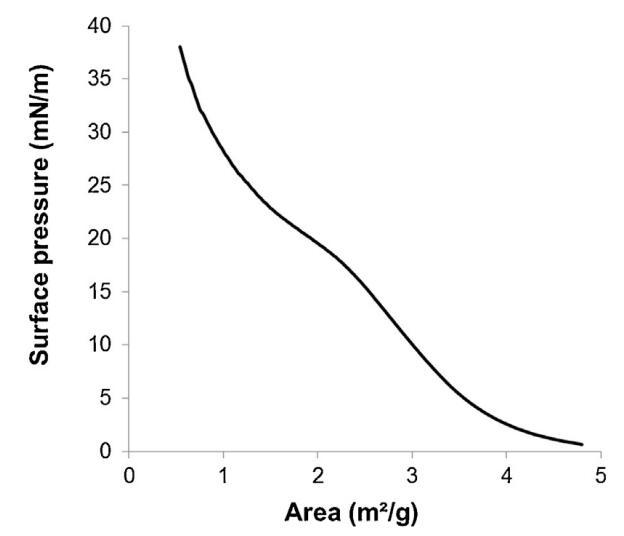 圖3。通過(guò)傳播精漿在空氣/緩沖液界面形成的單層的表面壓力面積(π–A)等溫線(n=3,標(biāo)準(zhǔn)偏差在0-18.9 mN/m范圍內(nèi)不超過(guò)1.5 mN/m,在18.9-38 mN/m范圍內(nèi)不超過(guò)1.2 mN/m)。