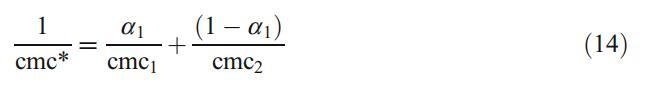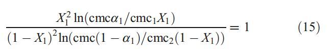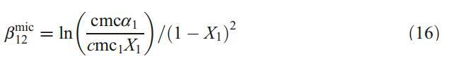 這些結(jié)果已通過使用規(guī)則溶液理論得到進(jìn)一步證實,該理論不僅表征了混合膠束中的相互作用參數(shù)bmic 12,而且還解釋了與理想的偏差[32]。X1是膠束中DPS的摩爾分?jǐn)?shù),可根據(jù)以下方程式迭代計算: