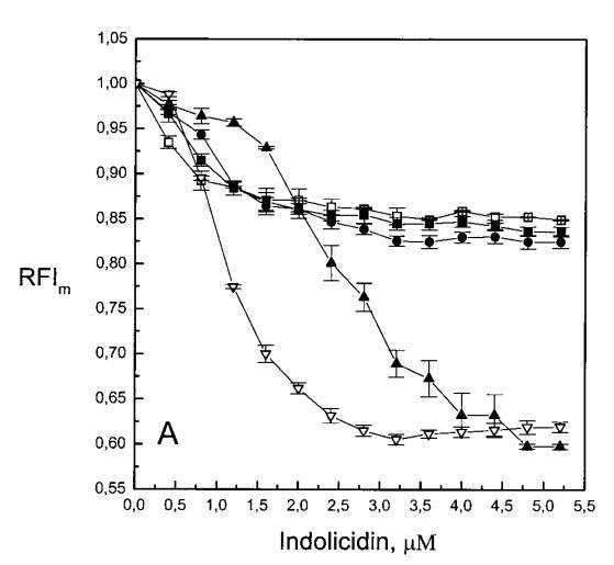 這兩種抗菌肽對芘標(biāo)記的磷脂類似物的猝滅機(jī)制令人感興趣??赡苌婕唉?陽離子相互作用(Dougherty,1996),后者由肽的堿性殘基表示。吲哚西丁具有較高的Trp含量(39%),可促進(jìn)其分配到脂質(zhì)雙層(Wimley和White,1996)。因此,芘和色氨酸之間的π-相互作用也是可能的。已經(jīng)證明,色氨酸可以淬滅膠束溶液中各種芘衍生物的熒光發(fā)射(Encinas和Lissi,1986;Altamirano等人,1998)。另一種可能性是鏈反轉(zhuǎn)(Holopainen et al.,1999),通過肽與脂質(zhì)雙層結(jié)合,導(dǎo)致芘部分調(diào)節(jié)到更極性的環(huán)境中,從而增加熒光團(tuán)微環(huán)境的極性,并導(dǎo)致量子產(chǎn)率降低。