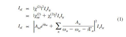 我們的VSF光譜設置已經(jīng)在前面詳細描述過。51簡言之,我們采用了一種再生放大鈦寶石系統(tǒng)(Legend,Coherent,Inc.),該系統(tǒng)經(jīng)過優(yōu)化,可用于生產(chǎn)鈦寶石≈100fs脈沖,中心波長為800nm,帶寬為12nm;使用商用光學參量放大器和差頻產(chǎn)生裝置(TOPAS,light Conversion,立陶宛)將800 nm光的1 mJ/脈沖用于產(chǎn)生可調(diào)諧的中紅外脈沖,而使用一個或兩個標準具(用于聚焦于CH拉伸的測量)將0.5 mJ的光譜變窄。在產(chǎn)生IR和800 nm光譜變窄后,兩束光束都通過半波片和偏振器,并以相對于表面法線(分別為IR和可見光)40°和35°的反射幾何結(jié)構撞擊樣品。采樣后,過濾掉所有剩余的800 nm光,將VSF信號聚焦到光譜儀(Acton Instruments)中,在光譜儀中通過光柵將其分散,并聚焦到電子倍增電荷耦合器件(emCCD)攝像機(牛頓和或)上。本研究中報告的所有光譜均在ssp偏振條件下收集(s偏振SF、s偏振可見光、p偏振紅外)。所有測量均在21.5°C下進行。