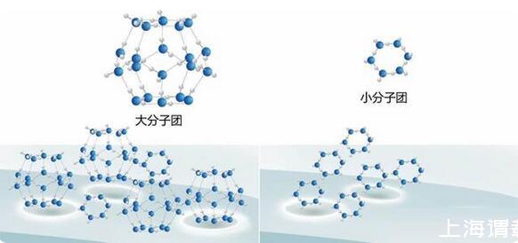 科學(xué)家近些年通過(guò)研究發(fā)現(xiàn),氣態(tài)的水可以假設(shè)為單個(gè)水分子或者是二聚體水分子;處于液相與氣相過(guò)渡狀態(tài)的水分子可能會(huì)有簡(jiǎn)單的三元、四元、五元甚至六元環(huán)形分子存在;液相水分子團(tuán)的結(jié)構(gòu)要大于液相與氣相過(guò)渡狀態(tài)的水分子,會(huì)有六元、七元、八元甚至是更大的分子團(tuán)存在。當(dāng)分子簇大于7以后已經(jīng)不大容易形成單個(gè)的環(huán)狀分子簇了,即便可以勉強(qiáng)形成大環(huán)分子狀態(tài)上也十分不穩(wěn)定,很快便會(huì)通過(guò)變形轉(zhuǎn)化成折疊形態(tài)或多環(huán)結(jié)構(gòu)。與高分子不同的是由于水分子之間并沒(méi)有形成共價(jià)鍵而是以氫鍵相連,因而這種分子鏈在液態(tài)時(shí)十分脆弱,應(yīng)該處于動(dòng)態(tài)下的不斷斷裂和組合過(guò)程中。