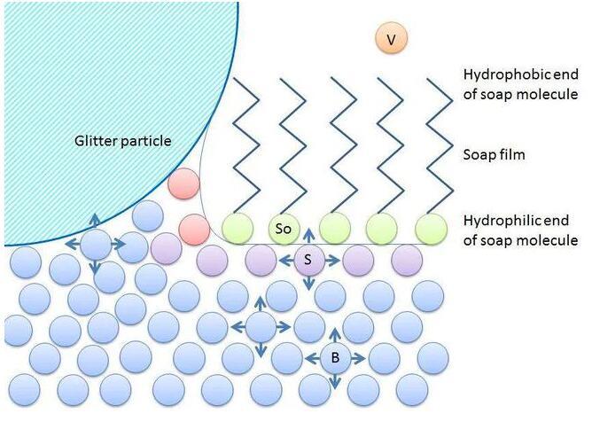 而水和乙醇的比例直接使得液體的表面張力發(fā)生了變化。液體的表面張力是由于表層的液體分子之間的作用力遠(yuǎn)大于液體-空氣的吸引力所導(dǎo)致。而表層的水分子之間的吸引力使得水與空氣的交界面具有收縮的吸力,這就表現(xiàn)為了液體的表面張力。