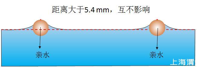 其規(guī)律是:親水的物體使液面升高,親水的物體之間靠近有加強作用,使中間的液面比兩側(cè)要高。同理,疏水的使中間液面更低。而這兩者都表現(xiàn)為相互吸引。