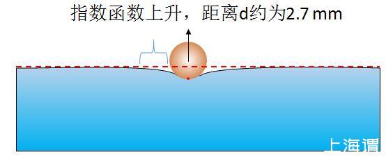 圖1親水物體使周圍水面升高,影響范圍約為2.7mm,此時液體表面張力垂直向下