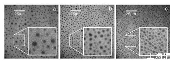 圖3:DSPC/DMPC與(a)40、(b)50和(c)60 mol%DSPC的混合單分子膜。放大區(qū)尺寸為2525 mm2。