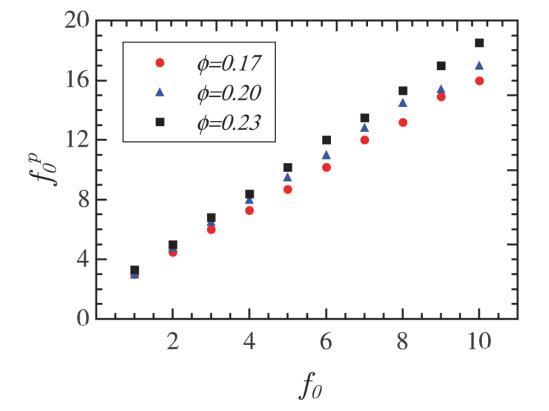 由于點偶極子模型的簡單性,值得尋找兩個模型之間的對應關系。為此,我們確定了一組f0在三個不同面積分數下的有效相互作用強度f p0。對于感興趣的參數范圍,可以在圖10中看到f p0和f0之間的關系。該圖有助于選擇適當的f p0,以便通過僅基于更簡單的點偶極子模型進行模擬來計算單層的結構特性?;蛘?,如果實驗對相關函數由點偶極子近似建模,則sffi ep的值可以使用根據該圖估計的相應f0計算。