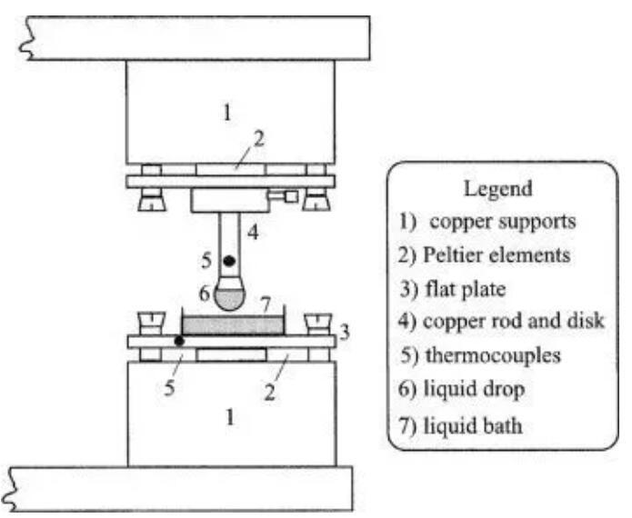 Monti后來和同事們做了這樣一種裝置,上面的儀器懸掛著一滴液體,下面是同樣液體形成的水平液面。