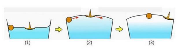 若兩個(gè)小固體漂浮在液面上。當(dāng)兩固體均被液體浸潤(rùn)或當(dāng)它們均不被浸潤(rùn)時(shí),表面張力的作用使相鄰兩固體相互接近;當(dāng)一個(gè)是被浸潤(rùn)而另一個(gè)不被浸潤(rùn)時(shí),表面張力使它們使他們遠(yuǎn)離。怎樣從張力角度來(lái)解釋?