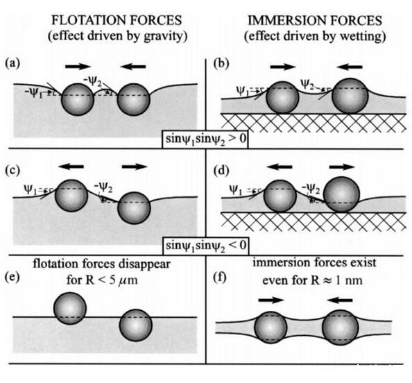 這里寫(xiě)的也比較清楚,漂浮顆粒之間的毛細(xì)作用由重力引起,其他的情況則是由顆粒的浸潤(rùn)性導(dǎo)致。如果有人還有疑問(wèn)的話,歡迎留言討論。