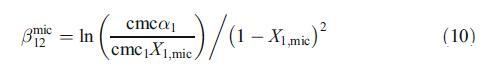 其中f1、f2和X1、mic分別是離子組分(即HTPB)的離子、非離子和膠束組成的活度系數(shù)。X1、mic可以從以下等式迭代計算: