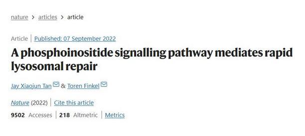 9月7日,來(lái)自匹茲堡大學(xué)醫(yī)學(xué)院細(xì)胞生物學(xué)系的譚小軍博士與衰老研究所所長(zhǎng)Toren Finkel博士在《自然》(Nature)雜志發(fā)表了一篇題為“A phosphoinositide signalling pathway mediates rapid lysosomal repair”的細(xì)胞生物學(xué)領(lǐng)域研究論文。研究者們通過(guò)一系列實(shí)驗(yàn),首次描述了一種溶酶體修復(fù)的核心途徑:PITT途徑(phosphoinositide-initiated membrane tethering and lipid transport)。通過(guò)該途徑,細(xì)胞能快速修復(fù)已受損的溶酶體。該發(fā)現(xiàn)將協(xié)助人們進(jìn)一步了解和治療由溶酶體受損驅(qū)動(dòng)的與年齡相關(guān)的疾病。