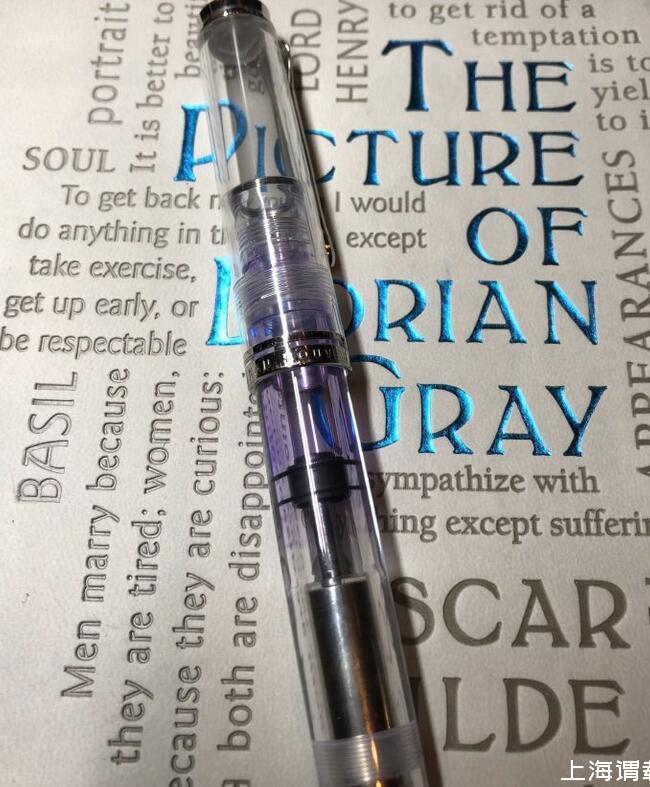 也有一些墨水是你以為洗干凈了,但用著用著還是能從犄角旮旯里蹦出來一些的:比如添加了金粉銀粉的,附著力特別強的(直接滲進了樹脂的墨囊中)。如果不信邪的話可以考慮拿一支示范筆,洗不洗得掉就一目了然了——當然也有一定的風險,見下圖: