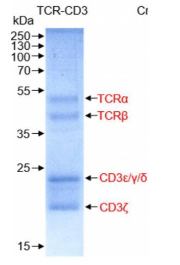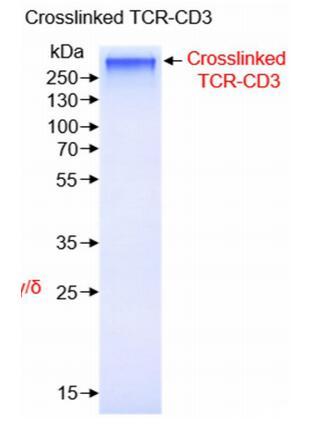 膜蛋白復合體TCR-CD3交聯(lián)后進行凝膠過濾分子篩層析,進行SDS-PAGE實驗,發(fā)現(xiàn)得到比較純的復合體。