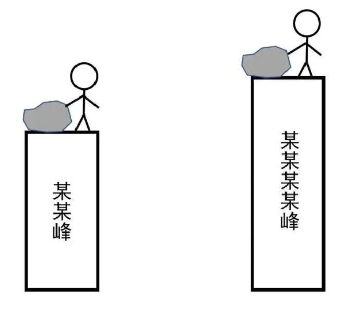 如圖2所示,如果小編從相對低一些的某某峰和高一些的某某某某峰推下一塊同樣的石頭,哪個釋放的重力勢能大呢?很顯然是從高一些的某某某某峰更大。那么,大了多少呢?