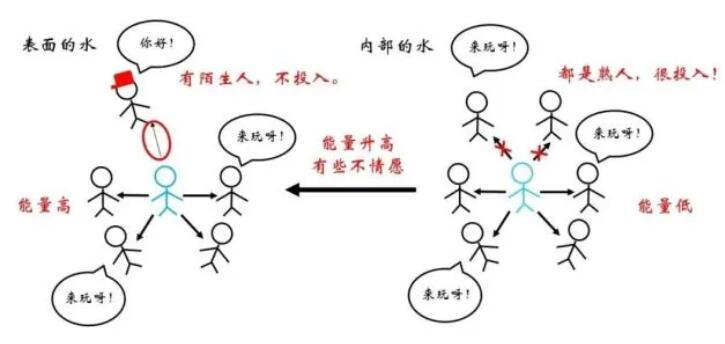 俗話說“物以類聚,人以群分”,更加相似的同類分子間往往關(guān)系更為融洽,而不同種分子間的關(guān)系則相對疏遠(yuǎn)。在物理上表現(xiàn)為同類分子間的勢能曲線最低點(diǎn)更低。因此,對于一個存在于內(nèi)部的水分子,如果來到表面,需要斷開與同類分子的部分關(guān)系,而代之以與比較“生疏”的空氣分子間的作用,顯然是不情愿的!這體現(xiàn)為能量的升高。那么,什么情況下水分子要從內(nèi)部來到表面呢?正是吹泡泡的時候。