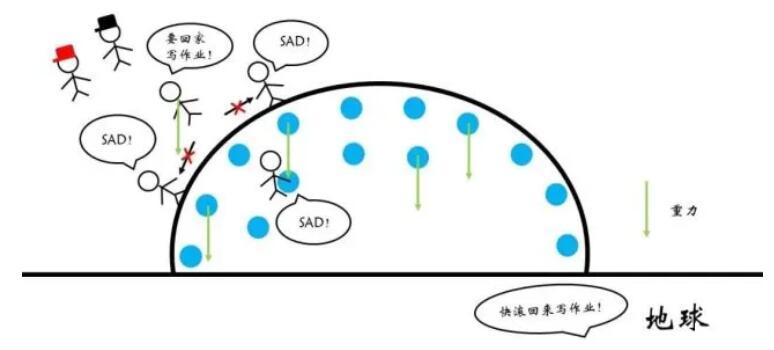 這樣的理解雖然直觀,但是缺少了幾分更加深入的視角,也沒辦法真正理解什么是表面張力。那怎么辦呢?我們來看看與力對應(yīng)的能量(特指勢能)。以重力為例,大家可能聽說過重力勢能,即某一地球附近的物體由于處于一定的高度而蘊(yùn)含的能量。更加直觀地講,如果以地面為勢能零點(diǎn),則物體在重力的作用下下落到地面所能釋放的能量就是重力勢能。