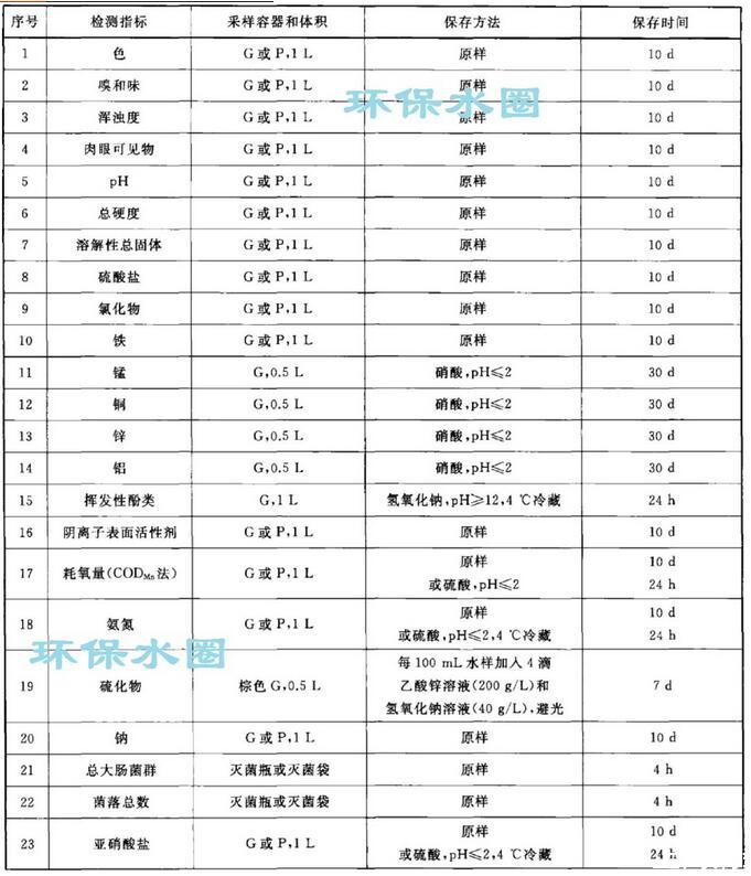 地下水樣品保存和送檢要求