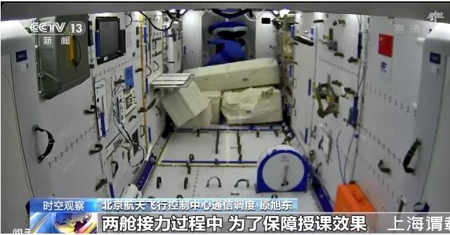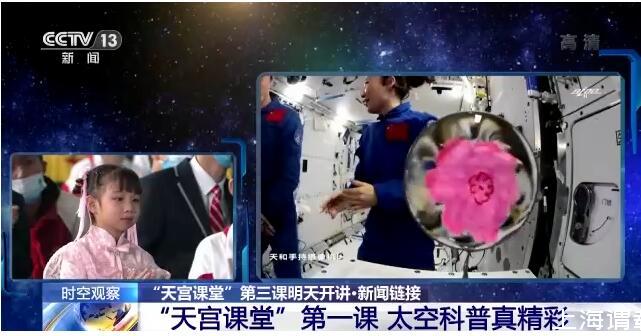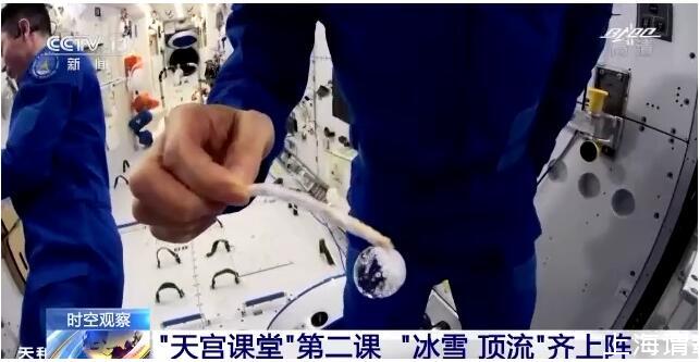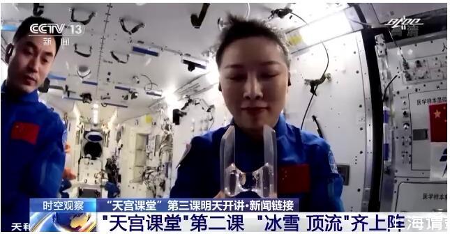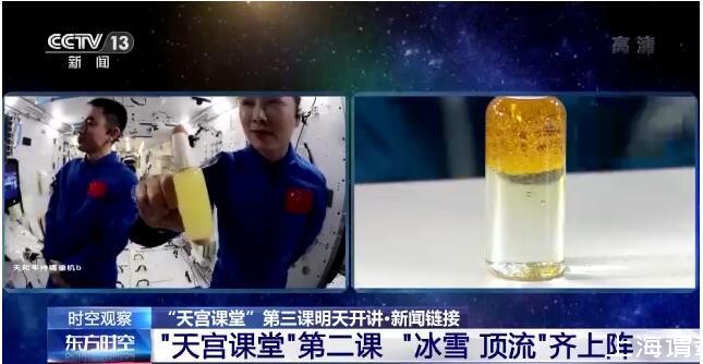 在約45分鐘的授課中,航天員演示了微重力環(huán)境下太空“冰雪”實驗、液橋演示實驗、水油分離實驗、太空拋物實驗,講解了實驗現(xiàn)象背后的科學(xué)原理,還展示了部分空間科學(xué)設(shè)施。