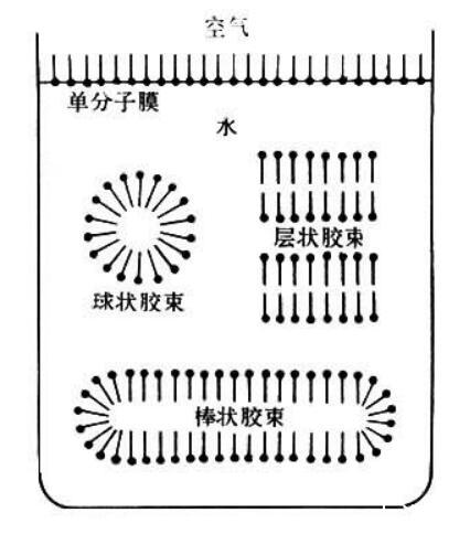 圖1含有表面活性劑的溶液中締合形成的膠團(tuán)或膠束過(guò)程的示意圖