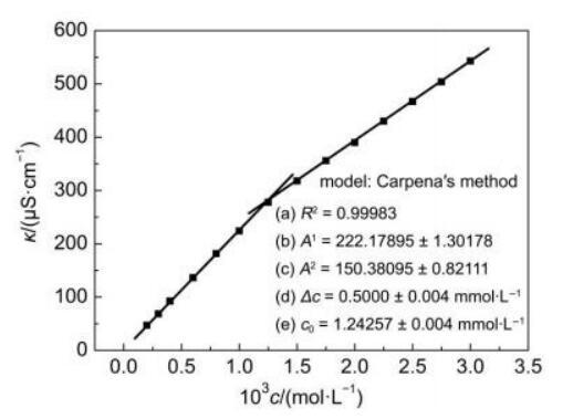 圖4電導(dǎo)法測(cè)量含有表面活性劑溶液的臨界膠束濃度