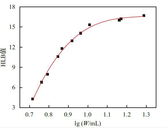 式中,Y為表面活性劑的HLB值;X為lg(W/mL),即表面活性劑測得的水?dāng)?shù)取對數(shù)值。