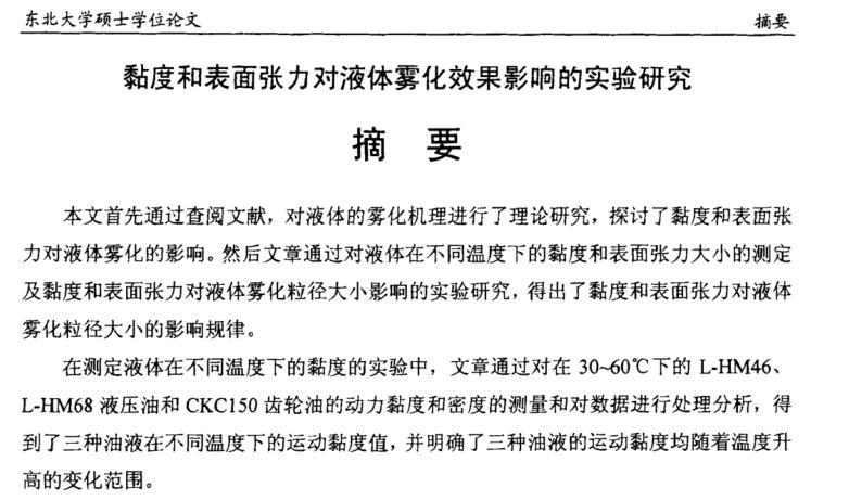 【摘要】:本文首先通過(guò)查閱文獻(xiàn),對(duì)液體的霧化機(jī)理進(jìn)行了理論研究,探討了黏度和表面張力對(duì)液體霧化的影響。然后文章通過(guò)對(duì)液體在不同溫度下的黏度和表面張力大小的測(cè)定及黏度和表面張力對(duì)液體霧化粒徑大小影響的實(shí)驗(yàn)研究,得出了黏度和表面張力對(duì)液體霧化粒徑大小的影響規(guī)律。