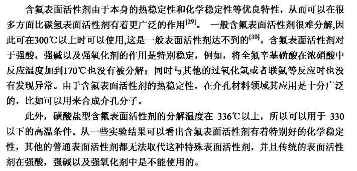 【摘要】:本論文首先對(duì)新型含氟表面活性劑的特性,應(yīng)用領(lǐng)域,國(guó)內(nèi)外研究進(jìn)展進(jìn)行了全面的綜述。含氟表面活性劑是目前最受青睞的特種表面活性劑,相比于傳統(tǒng)的碳?xì)浔砻婊钚詣砻婊钚詣┑挠昧可?,降低水溶液表面張力的作用?qiáng),同時(shí)可以跟其它表面活性劑起到很好的復(fù)配效果,可以應(yīng)用于消防、鉻霧抑制劑、造紙、冶金、起泡與消泡劑的合成等很多領(lǐng)域。