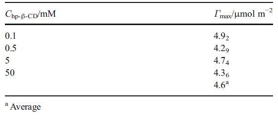 表1 不同hp-β-CD濃度下NP的表面過量(Γmax)值