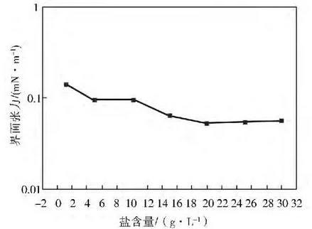 不同含鹽量對(duì)表面活性劑界面張力的影響