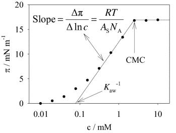 表面濃度和表面吸附量之間單層的差異(等溫線斜率)可以忽略不計,因此表面濃度與在單個表面活性劑分子的有效面積成反比。