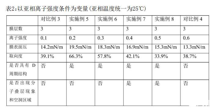 ?對比實驗:亞相溫度過高(>30°C)或離子強度過低(<0.2)會導(dǎo)致纖維排列混亂(對比例1–4),超純水亞相則無法形成D周期結(jié)構(gòu)(對比例5)。