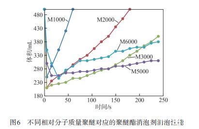 圖6不同相對分子質(zhì)量聚醚對應(yīng)的聚醚酯消泡劑消泡性能